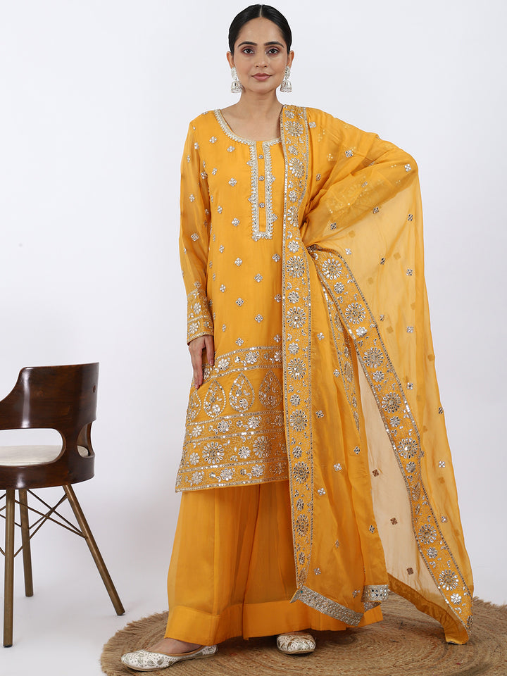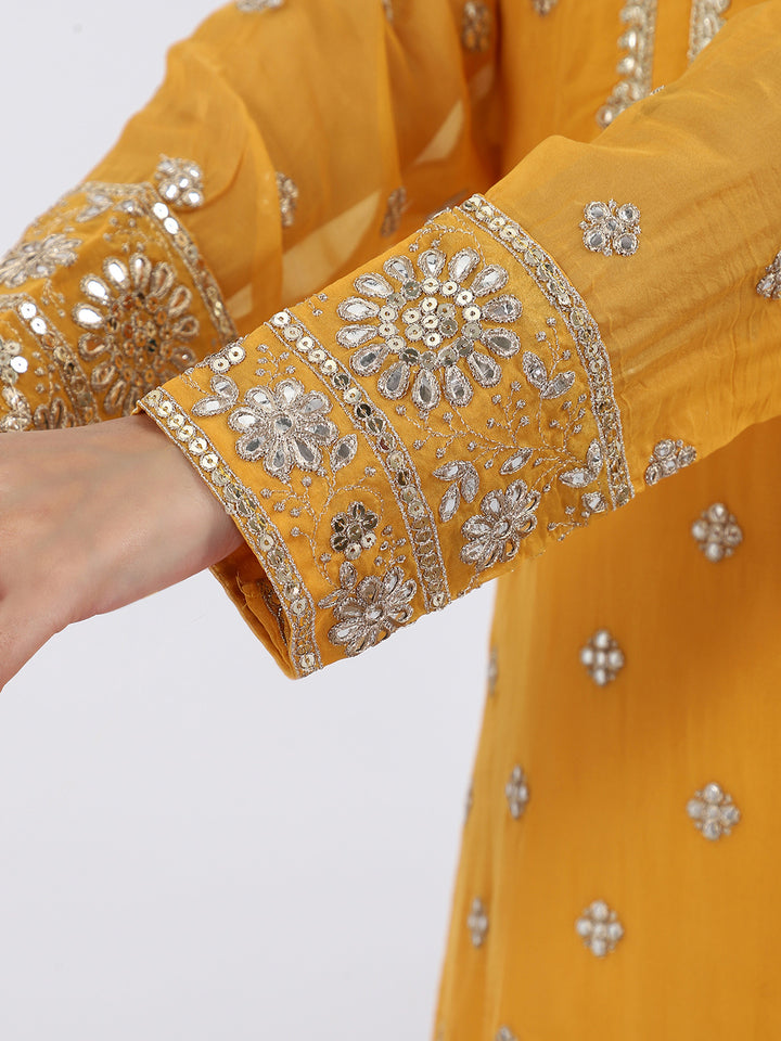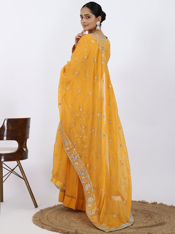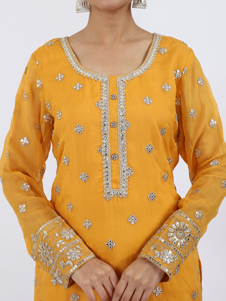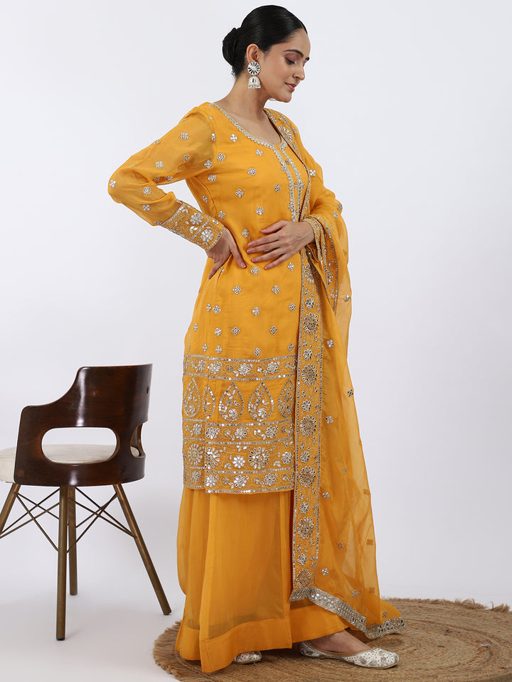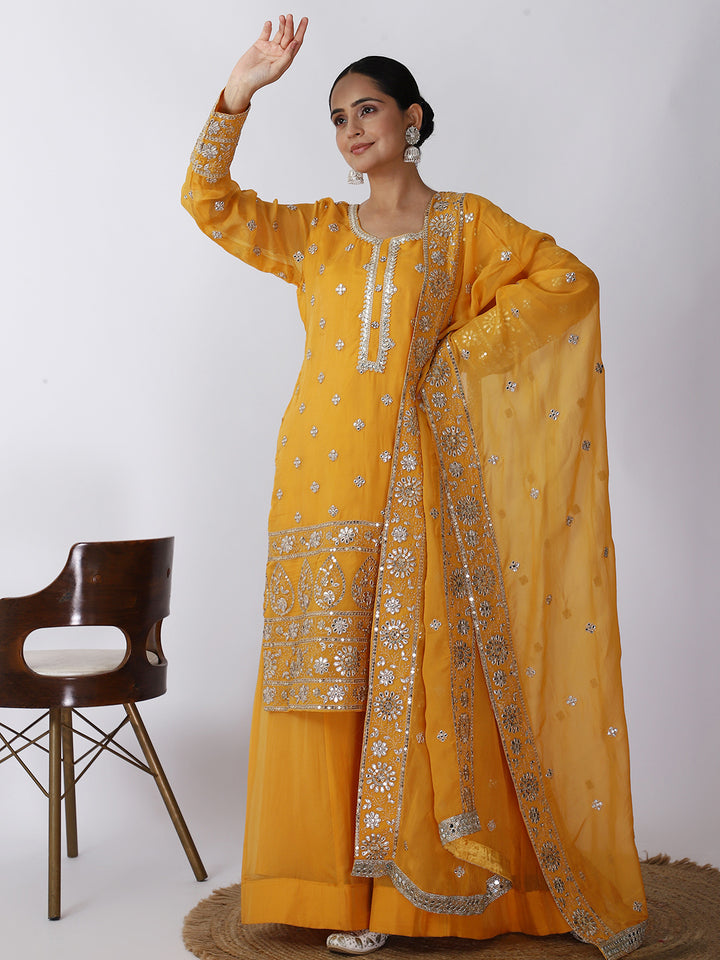 "Mango Zest" Mango Yellow Organza Sharara Suit with Gotta Work